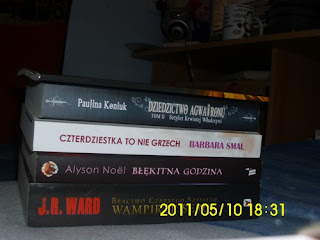 4. Błękitna godzina – Alyson Noël – drugi tom Nieśmiertelnych. Pierwszy tom nawet mi się podobał ciekawe jaki będzie drugi tom. Za książkę dziękuję Kasi ;*