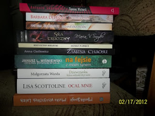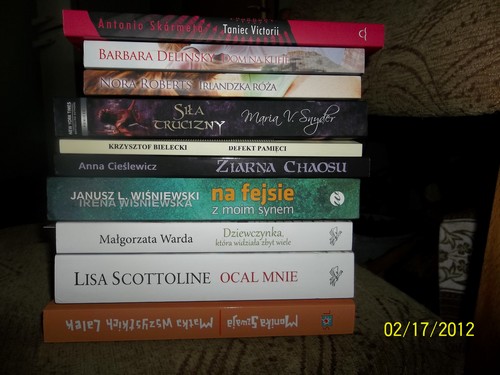 Miała być recenzja, ale Lena się buntuje i jest stos (wiecie takie nasze porachunki małe ;)). Tak więc o czym to ja… A tak! Stosik, a właściwie stosy zapoczątkowała wyżej wymieniona kobieta, która jest współwinna mojego bankructwa, braku miejsca na półce i oszołomionego wzroku mojej mamy. Czuje się najmniej winna bo to nie moja wina, że oddawała tyle ciekawych książek, prawda?? Ekchem… tak więc Lenka rozpoczęła obfity tydzień w książki… i jej stos jest największy no nie?? Wiedziałam, że się ze mną zgadzacie… ;D. Radość ze stosików przyćmiewa jedno smutne zdarzenie, o którym napiszę na końcu… ;(