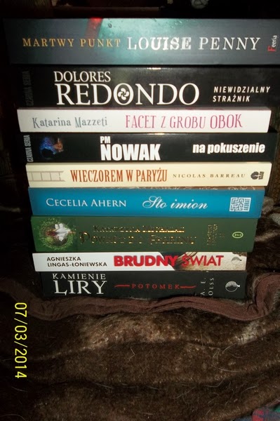 “Martwy punkt” Louise – no bo wiecie, ten intrygujący opis… Priorytet więc recenzja pojawi się w tym tygodniu (no, jeśli Bujaczek ją znajdzie…). “Niewidzialny strażnik” Dolores Redondo szedł do Bujaczka od yyy grudnia? No ale w końcu ma i może w miarę szybko przeczyta… może… Teraz jednak Bujaczek wie, że warto było czekać, bo podobno dobra książka, Bujaczek oceni. A “Facet z grobu obok” Katariny Mazzeti szedł do bujaczka od stycznia (hehe, książki Bujaczka nie lubią :P), podobno zabawna, jeśli tak to Bujaczek kontenta, bo ostatnio lubi takie. A ta, “na pokuszenie” PM Nowaka szło tylko od lutego :D. Bujaczek czytał inną książkę autora i się Bujaczkowi podobała, oby z tą było tak samo. Na “Wieczorem w Paryżu” Nicolasa Barreau skusiłam ię trochę pod wpływem chwili po przeczytaniu pozytywnych opinii. Bujaczek jest jej ogromnie ciekawa! Ha! Nowa pozycja Cecelii Ahern “Sto imion” to Bujaczka perełka w tych zbiorach, bardzo bardzo lubię jej twórczość. Jeśli chodzi o “Powrót do Ferrinu” Katarzyny Michalak to już Bujaczek zarezerwował sobie u kogoś książkę bo bał się, że ta co do niej została wysłana zaginęła, ale nie, doszła i cieszy Bujaczka oczęta! Nowa- nie nowa pozycja w dorobku Agnieszki Lingas-Łoniewskiej “Brudny świat”, książka wreszcie doczekała się polskiej premiery i Bujaczek ją ma sasasasa :D. No i ostatnia aczkolwiek wcale nie najgorsza – “Kamienie Liry. Potomek” A. E. Olss – może być ciekawie, oj może!