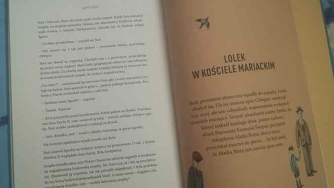 Plusem tego wydania jest oprawa graficzna. Twarda oprawa z ilustracją wież mariackich przyciąga uwagę, a środek oczarowuje kreską Katarzyny Fus. Ilustratorka sprawiła, że rysunki klimatem przypominają dawne bajki, co dla mnie było miłym powrotem do dzieciństwa. Plusem jest również duża czcionka, pozwalająca nieco starszym czytelnikom samemu zmierzyć się z historiami.