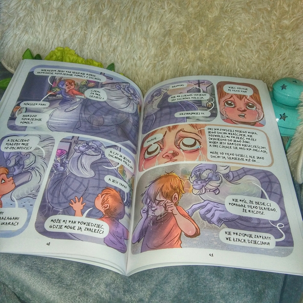 Skoro to komiks, nie można zapomnieć o ilustracjach. Magdalena Babińska świetnie uzupełnia nimi treść. Rysunki są kolorowe, małe i duże. Zachwycają swoją bajkowością, detalami oraz tym, że tak dobrze odwzorowują, co skrywa się między literami. Ilustracje zachwycą nie tylko młodszego odbiorcę, bo i dorosły czytelnik nie będzie w stanie się im oprzeć. Mnie one oczarowały. Na chwilę stałam się dzieckiem, które wierzy w magię i chce przeżyć przygodę.