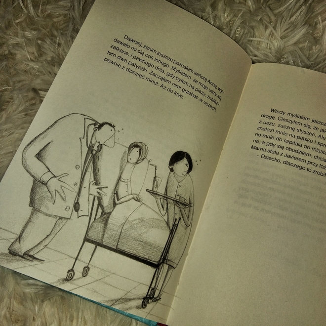 Rozumiem, co chciał przekazać Van Haele Jaroen, trafiło to do mnie i poruszyło moje serce. Morze ciche daje do myślenia, zatrzymuje nas w pół kroku i pozwala chociaż trochę zajrzeć do świata osoby niesłyszącej, zobaczyć jak to jest. Z czym muszą się zmagać i ile ich omija. Nie ma tu dużo treści, tekst jest dość duży, ale to, co ukryte pomiędzy słowami mówi dużo więcej. Klimatu książce dodają przepiękne ilustracje autorstwa Sabien Clement. Będę jednak upierać się, że to pozycja dla nieco starszych dzieci. Nie przeczę oczywiście, że i docelowi odbiorcy jej nie zrozumieją. Myślę, że to zależy od stopnia dojrzałości i tego, jak emocjonalne jest dziecko.