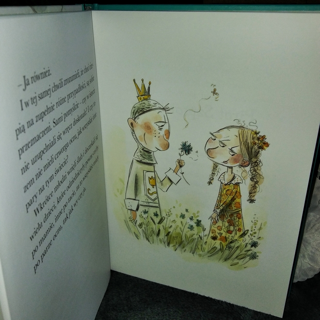 Zwariowane opowieści są dla dzieci od 6 do 8 lat, ale śmiało mogę napisać, że ta publikacja spodoba się i nieco starszym czytelnikom. W sumie… Nie dawałabym górnej granicy, bo ja na przykład bardzo fajnie się bawiłam przy czytaniu. Jedyne co mi zgrzytało, to fragment w opowiadaniu o królu. Jesteśmy proszeni o wyobrażenie sobie królewny o „wielgachnych czerwonych policzkach, pulchnych biodrach, pokaźnych brzuszyskach i tłustych łydkach”. Dla mnie jest to rażące i utrzymuje w przekonaniu, że piękne są tylko kobiety szczupłe. Poza tym minusem historyjkom nie można nic zarzucić. Proste, nieskomplikowane. Pobudzają wyobraźnię, pokazują, jak wiele można stworzyć z jednej historii i uczą.