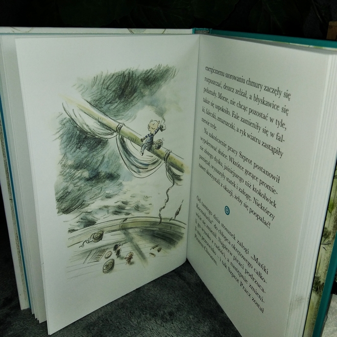 Jako wzrokowiec zawsze jako pierwsze oceniam szatę graficzną. W przypadku literatury dziecięcej nikogo to chyba nie dziwi. Zwariowane opowieści zachwycają wyglądem. Twarda okładka, piękna ilustracja i ten wypukły napis. No nie mogłam się z Potworkami napatrzeć. No i środek książki. Claude K. Dubois stworzył przepiękne pastelowe rysunki. Stanowią dopełnienie treści, ale nie wysuwają się na pierwszy plan. Na plus jest również szeroka czcionka, dzięki czemu tekst nie jest zbity.