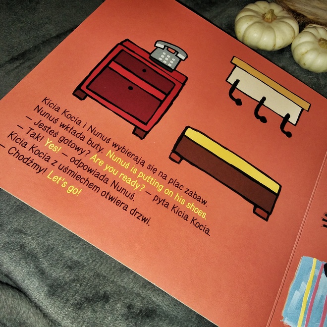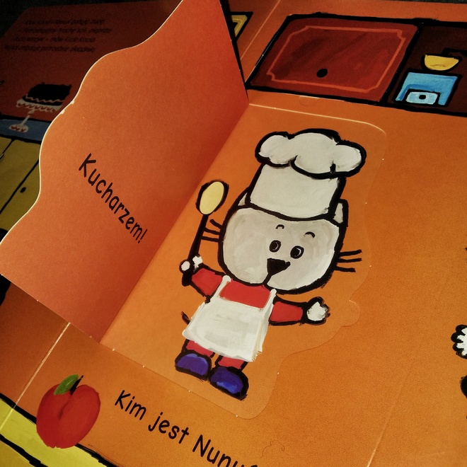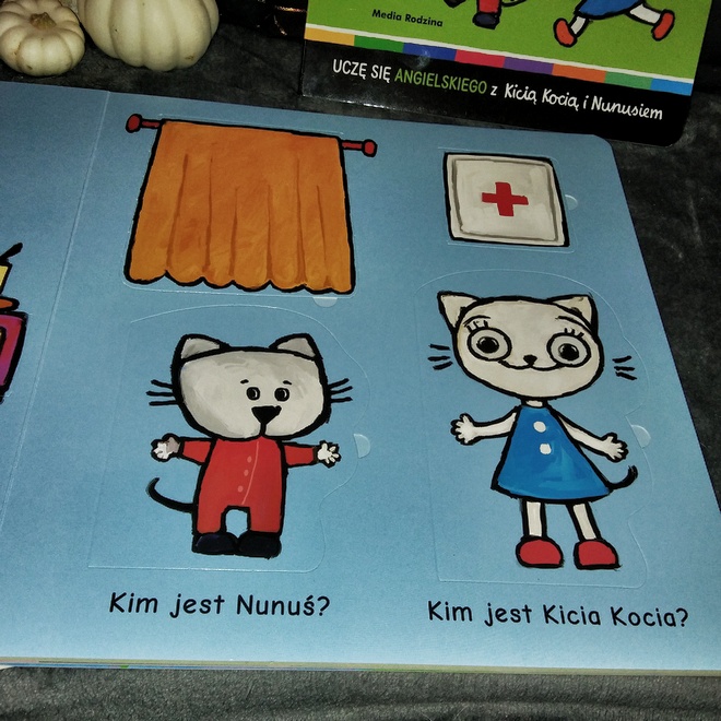 Zaczynam rozumieć fenomen tej kotki. Książeczki nie tylko bawią i są miłe dla oka. Pomimo małej ilości tekstu są ciekawie napisane. Najważniejsze jednak jest to, że kształcą. Dzięki nim mali czytelnicy poznają świat i uczą się wielu rzeczy. W przypadku tych dwóch tytułów Kicia Kocia przybliża trochę język angielski i pozwala poznać kilka fajnych zawodów. Ponadto Kicia Kocia pokazuje, że musimy być tolerancyjni, że dziewczynka może być kosmonautką, a chłopiec pielęgniarzem. Okienkowa książeczka ćwiczy również małą motorykę ręki.