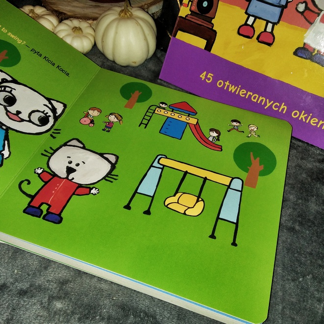 Kicia Kocia jest warta polecenia. No przynajmniej Plac zabaw. Playground oraz Jaki to zawód?. My się cieszymy z poznania tego ciekawego świata rodzeństwa.