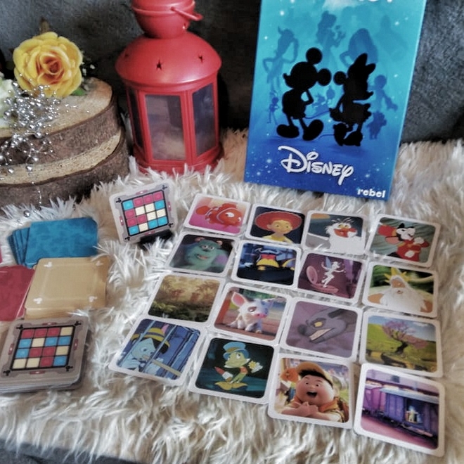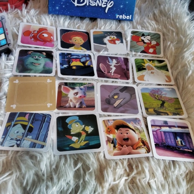 Piękne niebieskie pudełko, na którym umieszczono najpopularniejsze postacie disneyowskie, skrywa w sobie instrukcję oraz dużą ilość kart. Dzielą się one na 200 kart skarbów, 60 kart kluczy (40 zaawansowanych i 20 prostych), 25 kart przykrywek – po 8 niebieskich oraz czerwonych, 7 neutralnych i po jednej dwukolorowej oraz końca gry. W zestawie znajduje się też podstawka. Wszystko jest naprawdę trwałe i pięknie się prezentuje. Karty skrywają wszystkie postacie z bajek i zachwycają ilustracjami.
