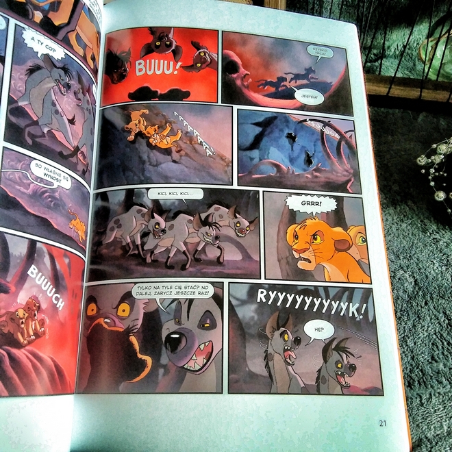 Muszę się wam przyznać, że Król Lew nie jest moją ulubioną bajką. Znam ją, kocham ścieżkę dźwiękową do niej i oglądałam wielokrotnie. I chociaż jej nie uwielbiam, to nie mogłam oprzeć się komiksowej wersji tej historii. Byłam ciekawa odwzorowania losów Simby w takim wydaniu.