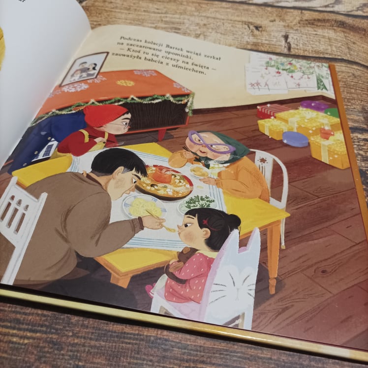 Nie da się jednak zaprzeczyć, że Magiczny sklep z prezentami to przede wszystkim piękne ilustracje w wykonaniu Hoang Giang. Pełne żywych kolorów, obrazujące, to co autorka chce przekazać w treści. Kiedy trzeba czuć w nich magię świąt, ale również smutek, ból, tęsknotę i miłość. Jesteśmy zachwyceni tymi pracami i już kilkukrotnie wracaliśmy dla nich do tej historii.