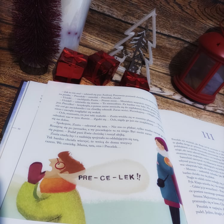 Zuzia cieszy się na nadchodzące święta. Będą niesamowite, bo po raz pierwszy jest z nimi Precelek. To mały piesek, którego dziewczynka i jej rodzina bardzo kochają. W domu trwają przygotowania, mama gotuje pyszności w kuchni, a dziewczynka robi łańcuch na choinkę. Gdy do domu wraca tata, wszyscy wyruszają na poszukiwanie idealnego drzewka. Dla Precelka wszystko jest nowe i rozpraszające, więc gdy dziewczynka przypadkiem puszcza smycz ten oddala się od swojej pani. Gdy Zuzia orientuje się, że jej przyjaciel zginął, od razu z rodzicami zaczyna go szukać. Niestety nie udaje im się go znaleźć i smutni wracają do domu. Zostaje im dać ogłoszenia, gdzie się da i czekać. Czy Precelek wróci do domu?