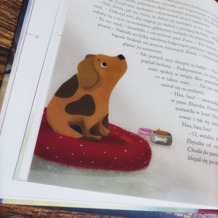 Gdzie jesteś, Precelku? czyta się szybko, ale gdy emocje wezmą górę, nad każdą stroną można spędzić i kilka minut. Bo trzeba przegonić łzy z oczu lub pozachwycać się ilustracjami Oli Krzanowskiej. Są one zachwycające, takie w stylu dawnych dobranocek. Dla mnie mają klimat pasujący do treści. Artystka swoimi pracami pięknie uzupełnia wartości wyrażane w tekście. Dzięki temu jest jeszcze ciekawiej, łatwiej sobie wyobrazić przygody, jakie przeżywa Precelek i jaką drogę musi przebyć, by powrócić do swojej przyjaciółki. Przyznam się, spłakałam się na tej bajce. Gdy czytałam o smutku Zuzi, myślałam o tym, co sama czułam, gdy Marley zginął i to też w mroźną zimę. Na szczęście autorka wywołuje nie tylko smutek, ale również radość, nadzieję i wiarę w ludzi. Myślę, że dobrze jest móc wierzyć, że nasze zguby trafią na kogoś, kto nakarmi i da nabrać sił.