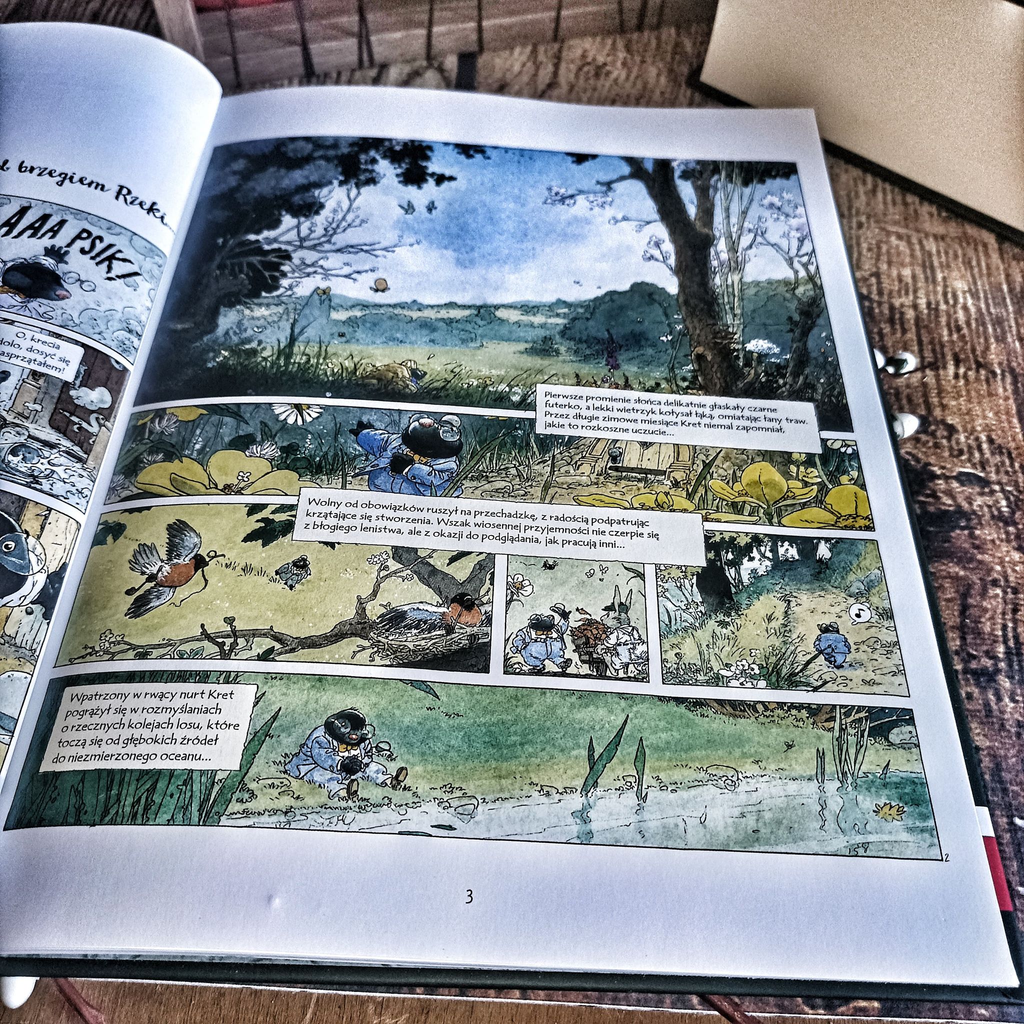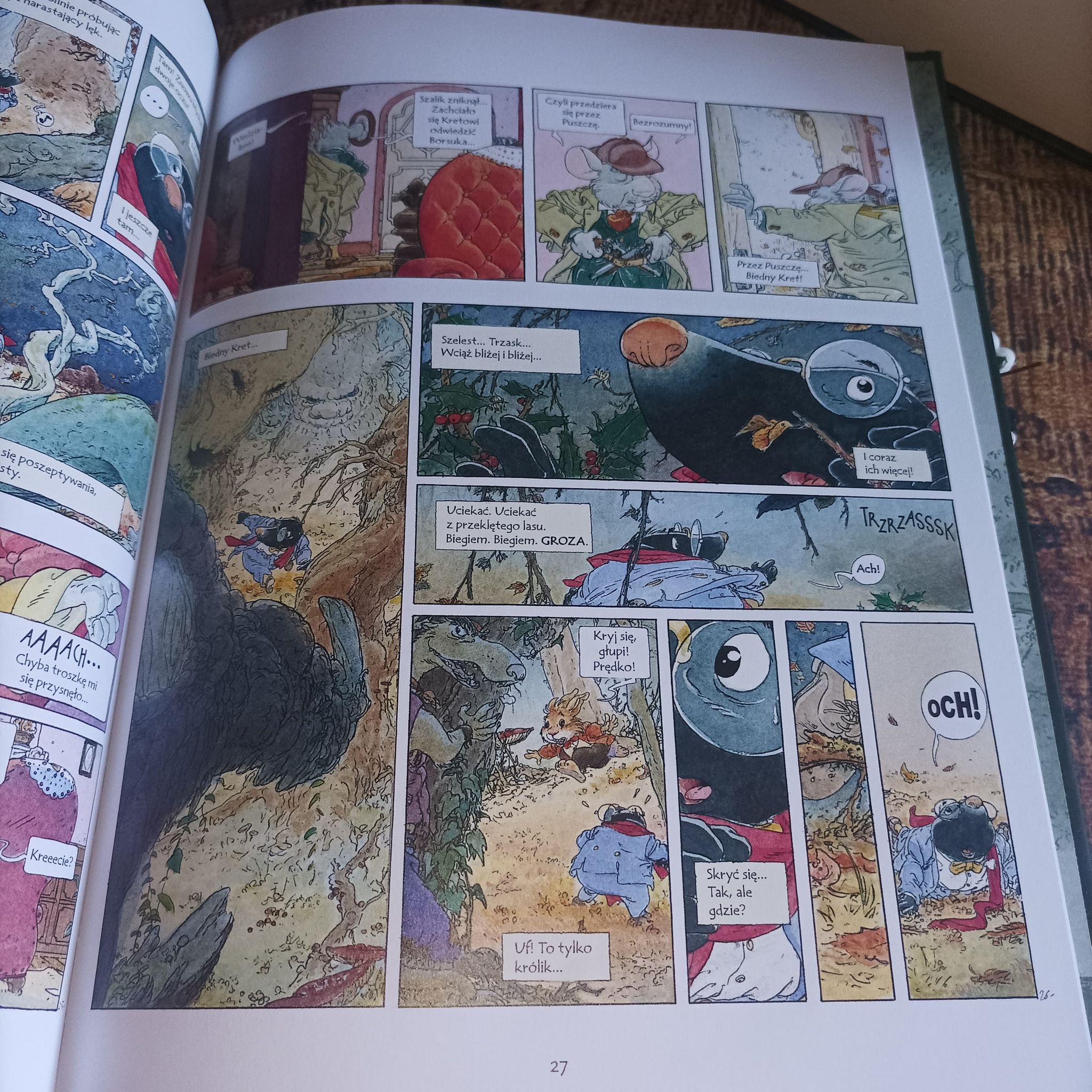 Byłam ciekawa, jak Michel Plessix poradzi sobie z adaptacją tej historii w wersji komiksowej. Przecież do przekazania jest tak wiele rzeczy. I jak się okazało, pierwszy zeszyt zaskakuje bardzo pozytywnie. W puszczy to rewelacyjny komiks, który oddaje klimat sielankowego otoczenia, różnorodnych postaci oraz angielskiego poczucia humoru. Tak jak w książce i tutaj dostrzec można u zwierząt duże podobieństwo do ludzi. Okrojony tekst nadal ma w sobie ogrom emocji, a wydarzenia z pierwszego zeszytu pokazują, jak ważne są relacje między bohaterami, ukazanie ich cech no i oczywiście przeżywane przygody. Warto również zaznaczyć, że dzięki tym bohaterom dzieci mogą poznać pory roku i to jak one przemijają oraz w jaki sposób my funkcjonujemy w ich trakcie.