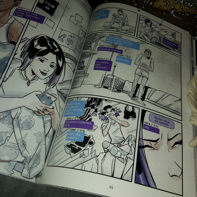 Raven czyta się wręcz ekspresowo, ale ilustracje na dłużej zatrzymują na sobie wzrok. Z zainteresowaniem przyglądałam się każdej z osobna i chociaż dawno nie jestem nastolatką, to bawiłam się rewelacyjnie w trakcie czytania. Twórcy komiksu przykuli moją uwagę, sprawili, że zżyłam się z bohaterką i byłam ciekawa dalszych wydarzeń. Zakończenie sugeruje, że to nie koniec i niecierpliwie wypatruje kontynuacji losów Raven.