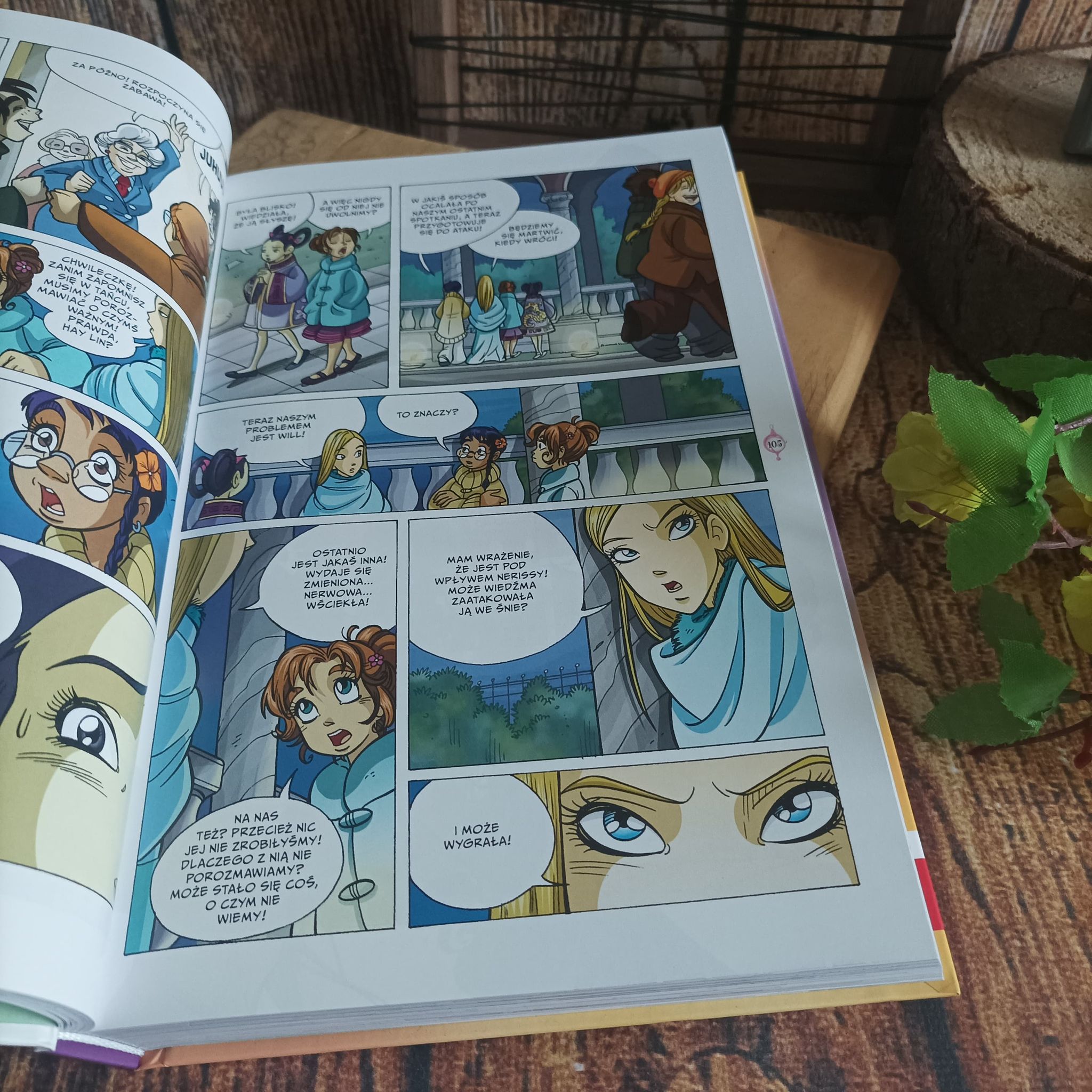 Księga 4 pochłonęła mnie od pierwszych stron, bo już słabo pamiętam, co tam się u dziewczyn działo. No i wersja komiksowa różni się nieco od bajkowej. Byłam ciekawa ciągu dalszego z Nerissą, tego, co zrobią Strażniczki i jak to wpłynie na Kondrakar oraz ich dalsze losy. A trzeba przyznać, że w tym zeszycie sporo się dzieje. Nie brakuje nagłych zwrotów akcji, dramatycznych momentów i całej masy skrajnych emocji. Czarodziejki zmieniają się z każdą historią, dojrzewają, uczą się siebie, ale również umacniają swoją przyjaźń. Myślę, że młodzi czytelnicy bez problemu wczują się w ich losy, będą rozumieli ich dylematy, lęki i problemy. Podoba mi się, że scenarzyści pokazują dojrzałość przyjaciółek, zachodzące w nich zmiany, a także to, że cały czas się uczą.