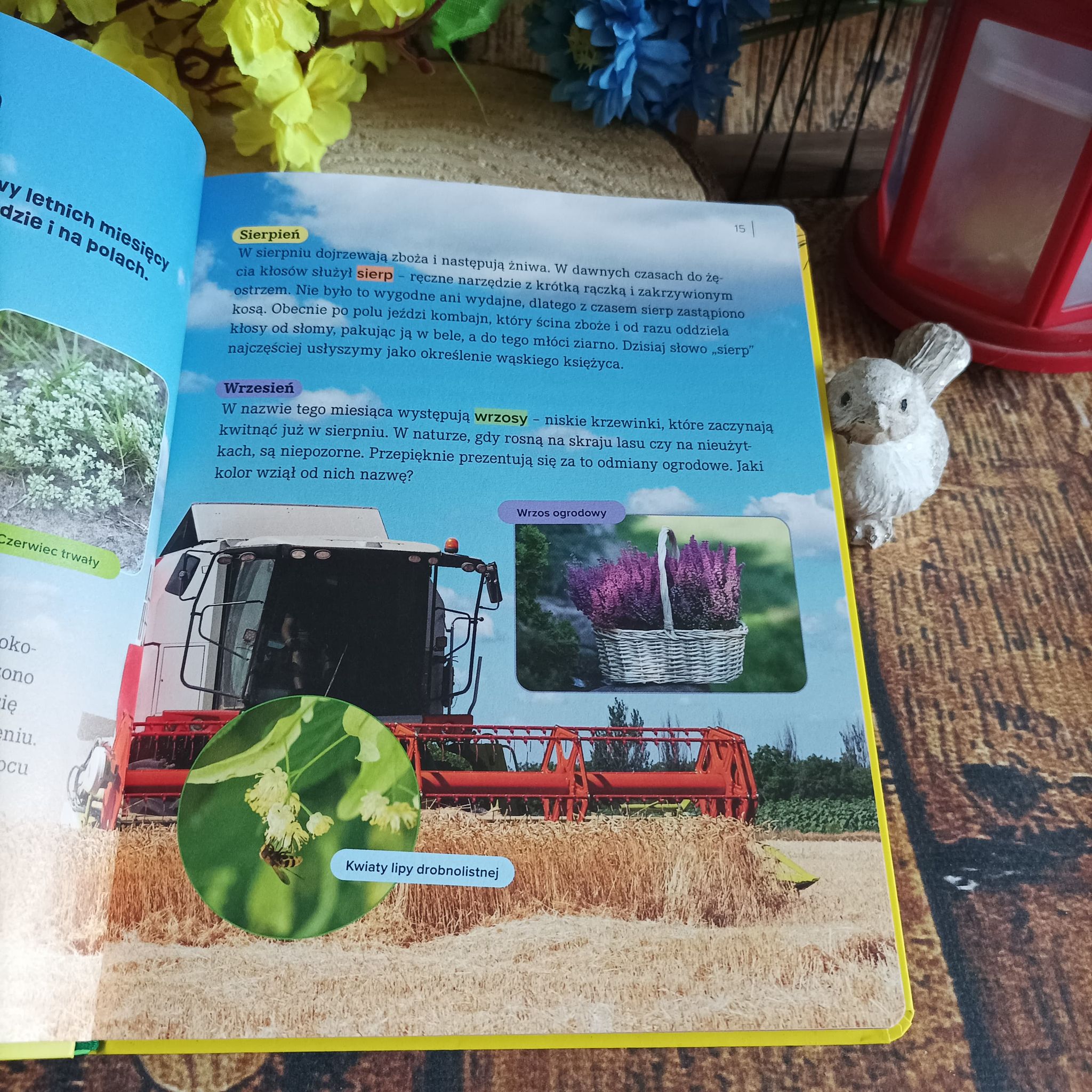 Nie da się ukryć, że Lato w świecie przyrody jest wydane równie pięknie, co Wiosna. Usztywniona okładka, która zachwyca ciepłymi kolorami oraz śliczną gąsienicą na froncie. W środku ślizgi papier, który z pewnością przetrwa wielokrotne kartkowania. No i oczywiście mnóstwo zdjęć, ramki, tabelki oraz kalendarze. Wszystko fajnie rozplanowane i wyróżnione różnymi kolorami. Każda z rozkładówek jest dopracowana i czytelna.