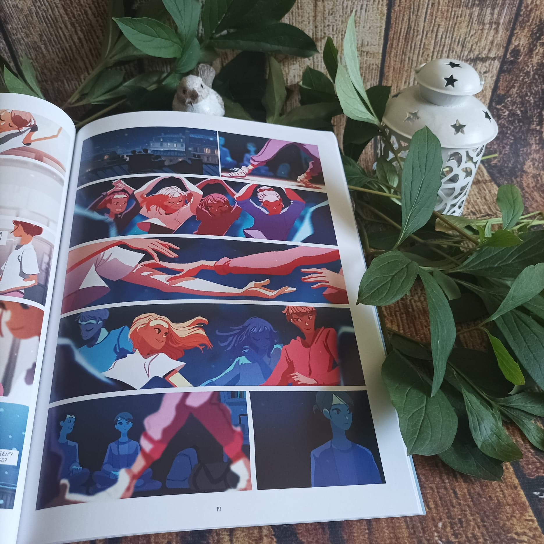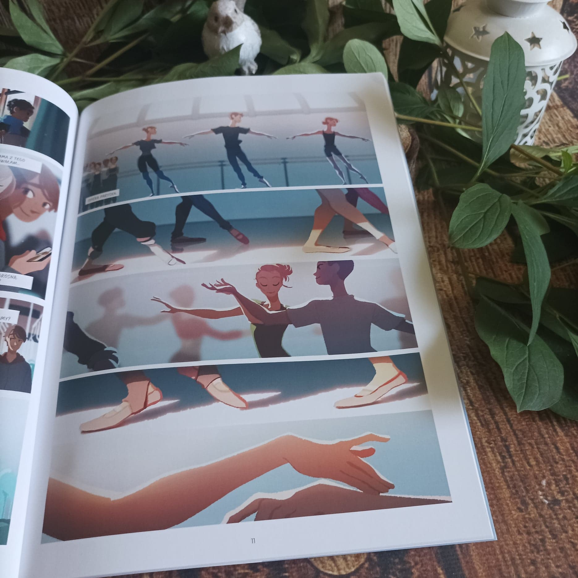 Swoimi pracami Lena Sayaphoum zachwyciła mnie od samego początku i z każdym kolejnym zeszytem utwierdzam się w swoim zdaniu. Jej kreska cechuje się dużą pewnością, ale zarazem delikatnością. Uwielbiam, że bawi się natężeniem światła, przez co jasne kadry pojawiają się na zmianę z tymi ciemnymi. Ilustratorka świetnie radzi sobie z oddaniem emocji oraz ruchu w swoich pracach. W tej części widać to niezwykle mocno. Artystka robi jakby przybliżenia na bohaterki podczas tańca, pokazuje każdy krok, gest ręki. No naprawdę robi to ogromne wrażenie.