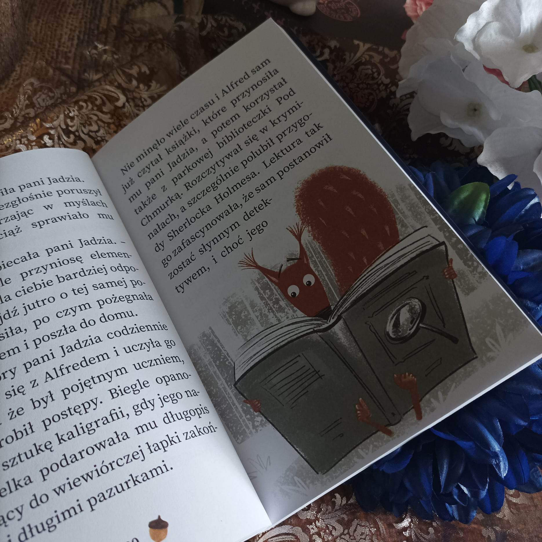 Alfred Wiewiór i tajemnicza walizka to książka idealna do samodzielnego, jak i wspólnego czytania. Przez to, że rozdziały są krótkie, a tekst bardzo duży i wzbogacony o ozdobne akcenty oraz same ilustracje dzieci bez problemu sobie z nim poradzą. Warto jednak też zainicjować rodzinny czas z powieścią. Bo owszem na początku mali czytelnicy świetnie się bawią, podążając za Alfredem. Jednak w książce skrywa się o wiele więcej. Agnieszka Stelmaszyk poprzez zabawę pokazuje, że każdy może się pomylić i nic nie jest tylko czarne lub białe, mamy dużo odcieni szarości i że nie każdym kierują szczere intencje.