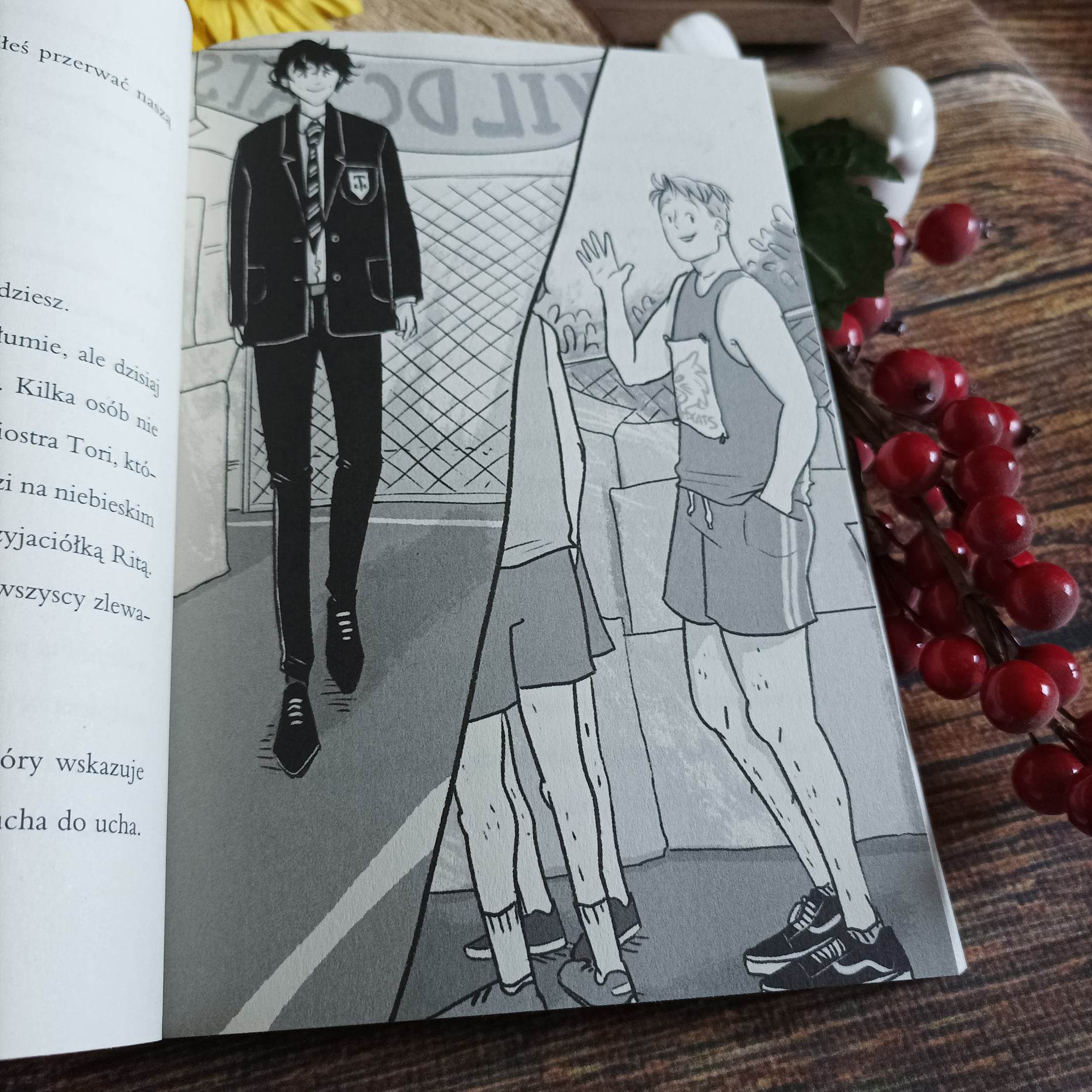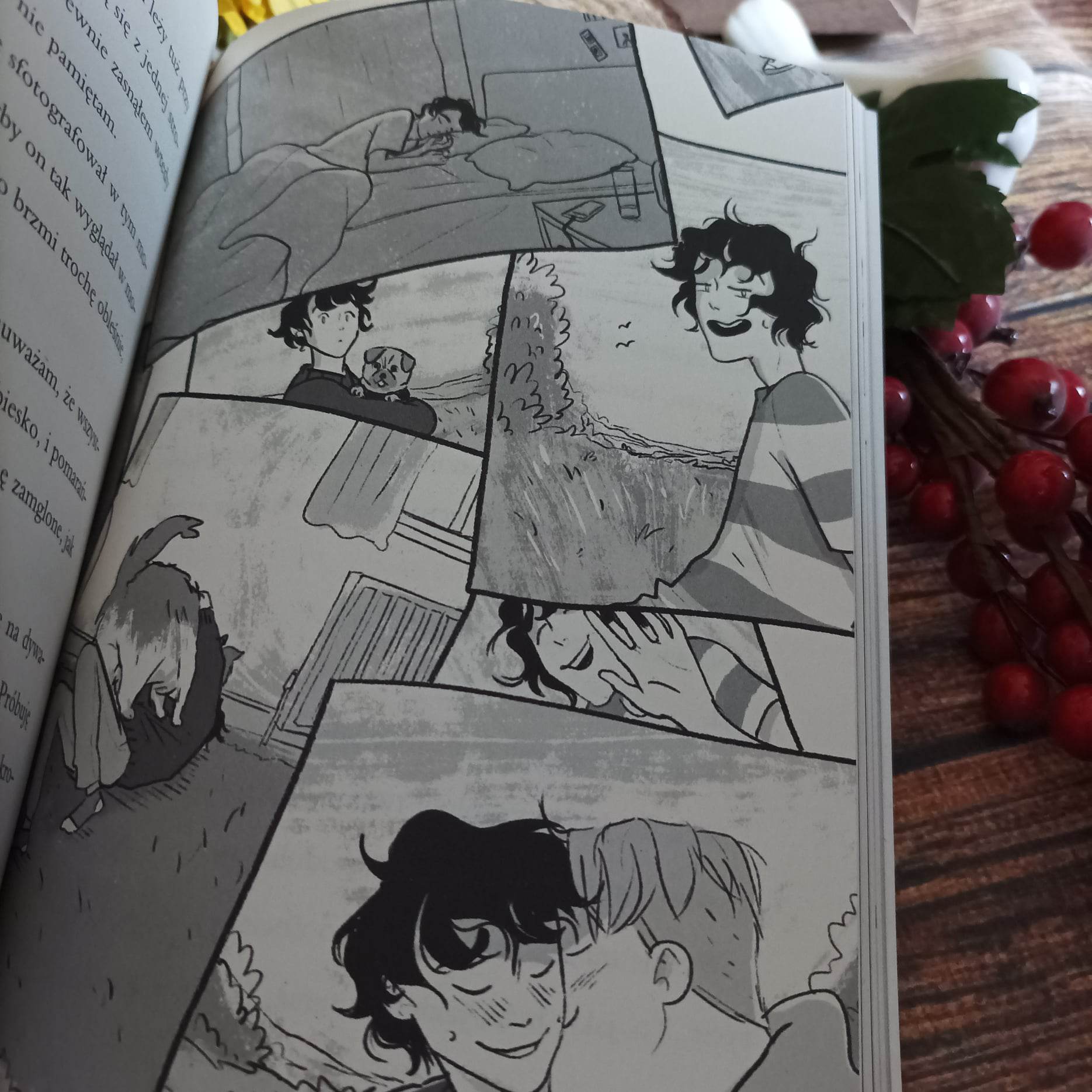 Nie jest to standardowa powieść graficzna, ale Alice Oseman nie zawodzi fanów swojej kreski i w noweli jest kilka jej prac. Te, jak wiadomo, są niesamowite, pełne uroku, słodyczy, ale przede wszystkim życia. Widać na nich interakcje między bohaterami, ich emocje, sposób poruszania, czy charakterystyczne gesty. Mam wręcz wrażenie, że znam już na tyle kreskę Alice, że czytając, miałam w głowie obrazy wydarzeń.