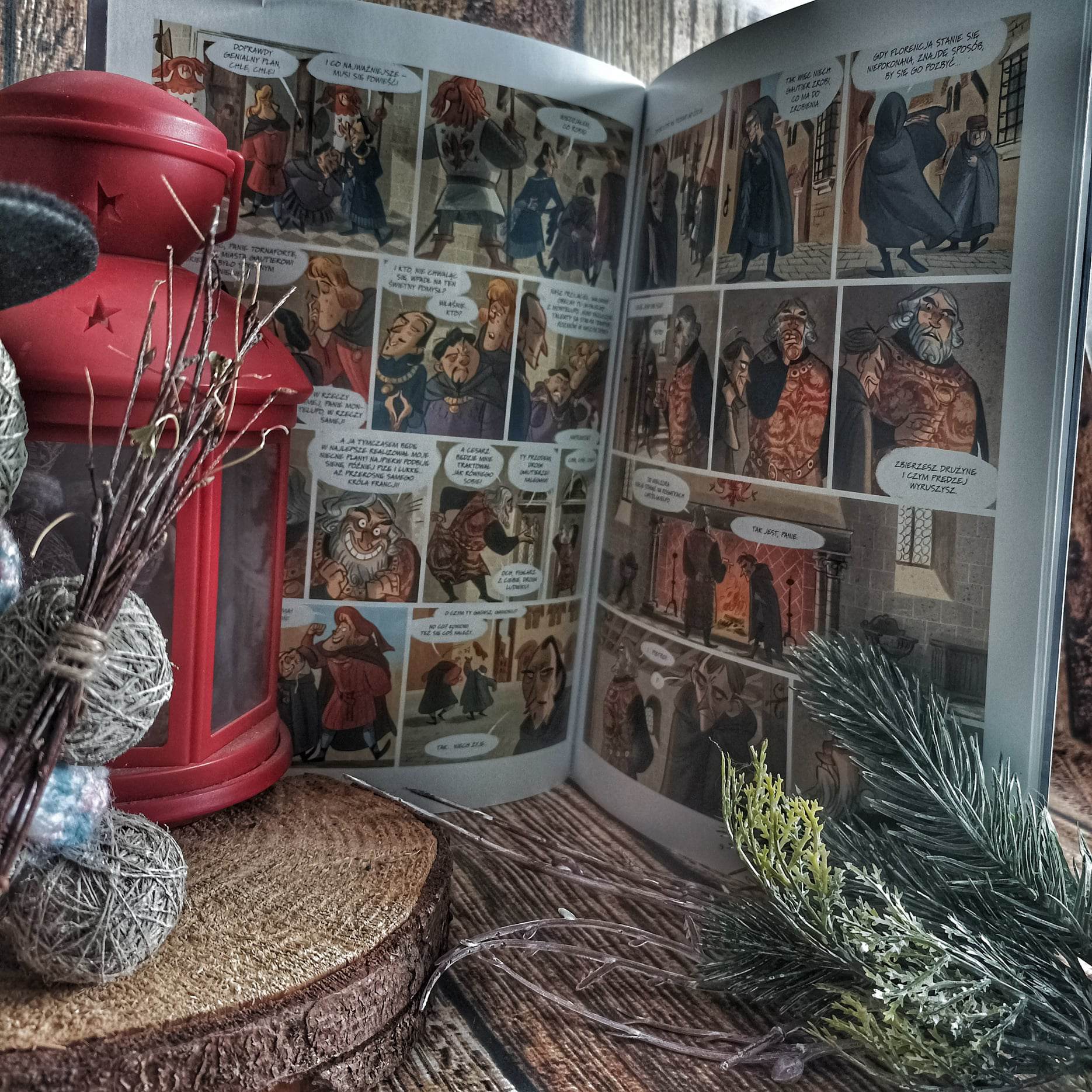 Już w pierwszym albumie polubiłam kreskę Stefano Turconiego. Ma on bardzo charakterystyczną kreskę, proste ilustracje przypominają trochę te średniowieczne – płaskie, ale już z pojawiającą się perspektywą. Pełne barw, detali, ruchu oraz emocji pojawiających się na twarzy. Nie mogę jednak zaprzeczyć, je jestem wręcz zachwycona komizmem sytuacyjnym. Artysta świetnie uchwycił wszystkie niuanse, czy to historyczne, czy też osobowościowe.