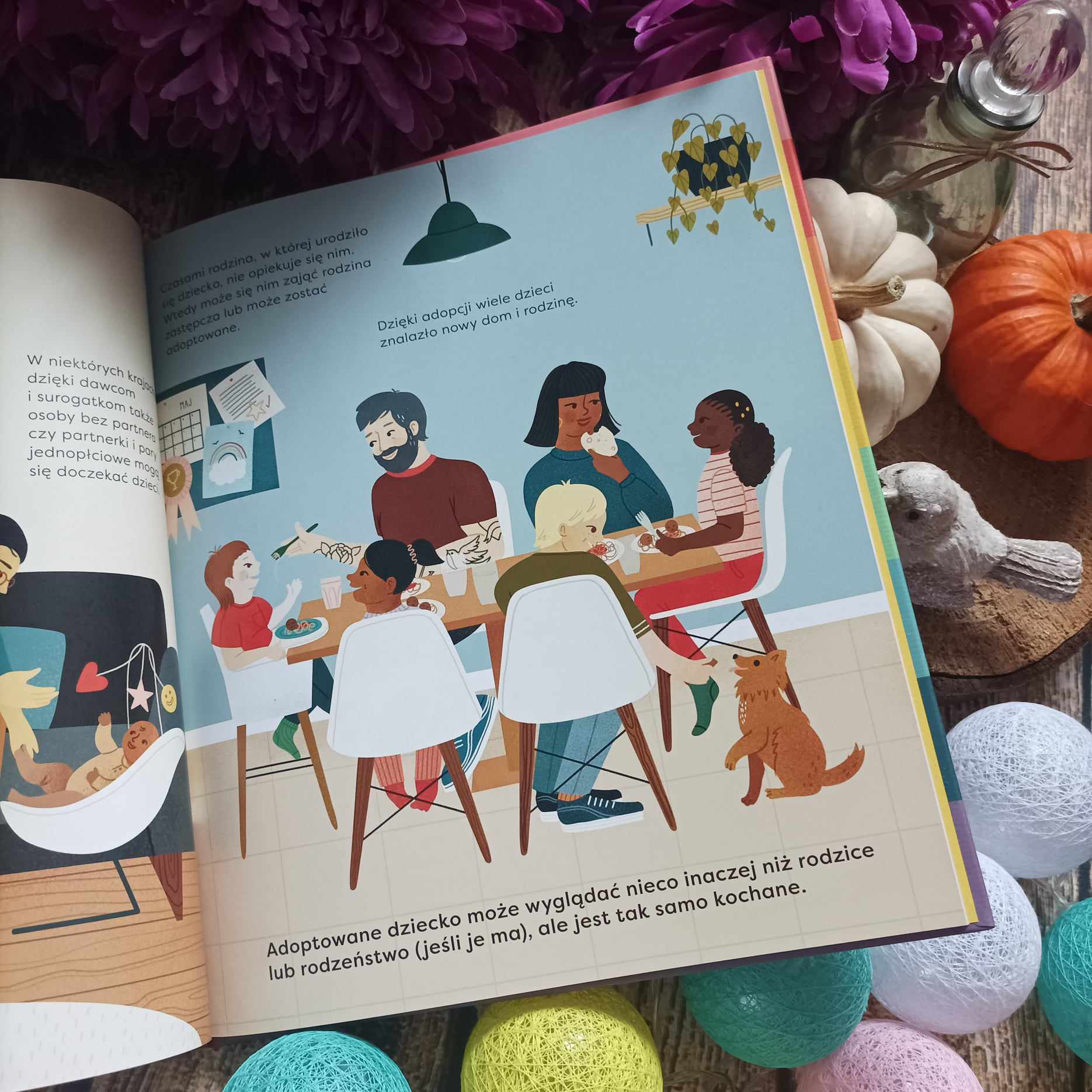 Ja jestem tym tytułem zachwycona. Jak powstaje dziecko, to rewelacyjne kompendium wiedzy. Stworzone językiem prostym i łatwym do przyswojenia. A pomimo małej ilości tekstu wiedzy jest tutaj od groma i to takiej rzetelnej. Ukazanej tak, by maluch chciał ją przyswajać i świetnie spędził z tą publikacją czas. Podobało mi się, że jest tutaj taka różnorodność i pokazanie na jak wiele sposobów w naszym życiu może pojawić się dziecko. Kolorowa, pięknie wyglądająca, moim zdaniem idealnie się nada na czas, gdy w domu ma się pojawić kolejny bobas, ale też, gdy dzieci zwyczajnie zaczynają zadawać pytania. To jedna z rzetelniejszych publikacji poruszających ten temat i dostosowanych do małych dzieci.