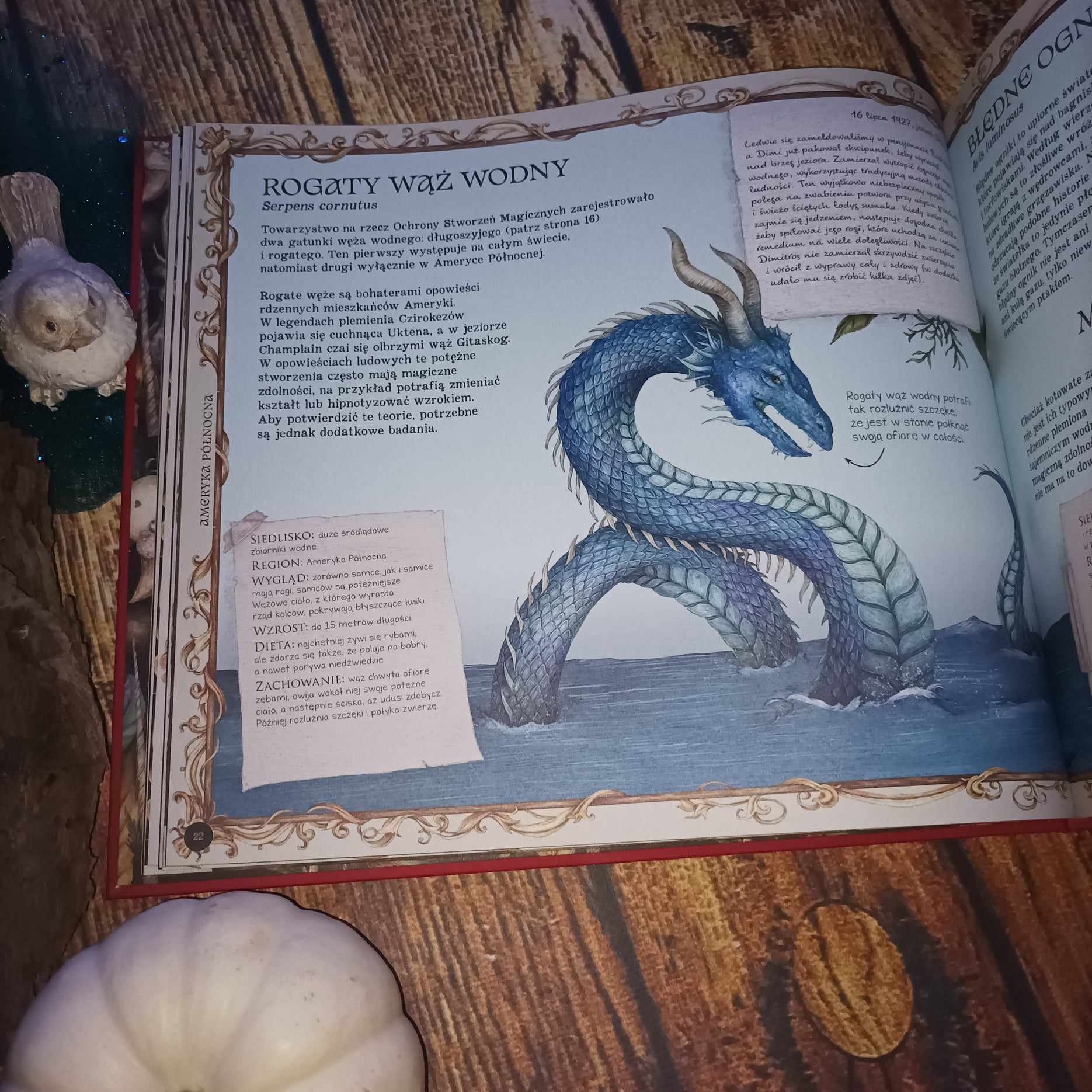 Wydanie tej książki jest naprawdę rewelacyjne i chociaż skierowane do dziecięcego grona czytelników, to jestem idealnym przykładem, że i niejeden dorosły będzie równie mocno zachwycony. W tej publikacji wszystko jest na plus, forma przekazu, zawarte informacje, szata graficzna i fakt, że w jednym miejscu zebrano tyle magicznych istot. Historia naturalna stworzeń magicznych pokazuje, jak dużo jest fantastycznych zwierząt i nawet ci zafascynowani tym tematem mogą być zaskoczeni nowymi gatunkami. Ja byłam! Nie sądziłam, że mam do odkrycia jeszcze tak dużo magicznych zwierząt i już zacieram ręce na myśl o poszukiwaniu informacji o nich. Nawet jeśli tylko są wymyślone na potrzeby legend.