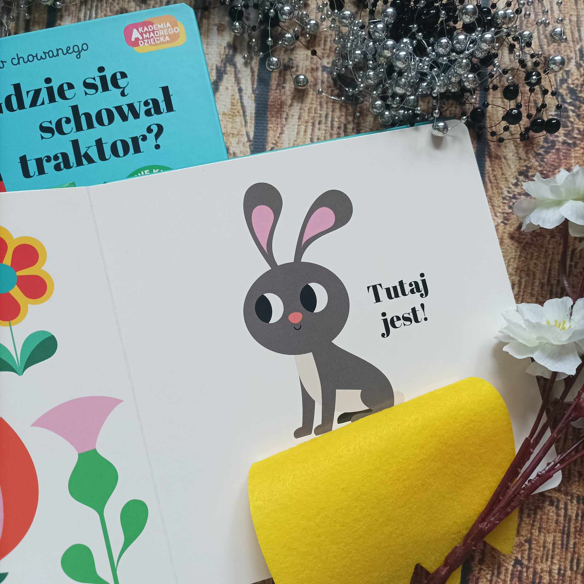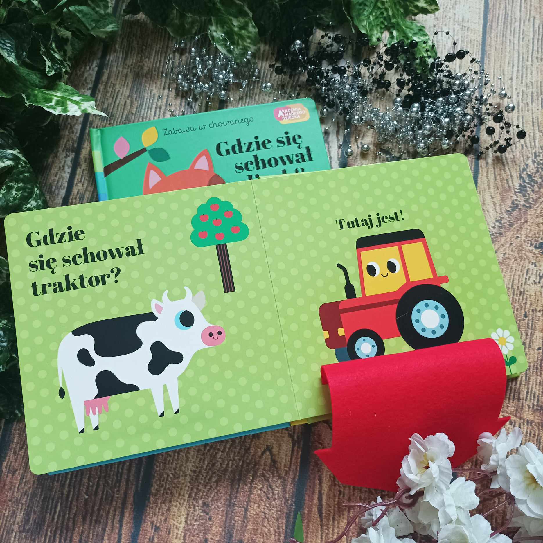 Seria Zabawa w chowanego to trwałe tekturowe książeczki z przepięknymi, chociaż prostymi ilustracjami we wszystkich kolorach. Niewątpliwym plusem są tutaj filcowe klapki znajdujące się, na co drugiej stronie. Fajne jest to, że każda ma inny kolor oraz kształt. Przetrwają ciekawskie rączki małych czytelników i gwarantują świetną zabawę. Mały czytelnik będzie zachwycony niezbyt dużą ilością tekstu i zadaniami do wykonania. U nas hitem – ponownie – okazało się lustereczko na końcu każdej książeczki.
